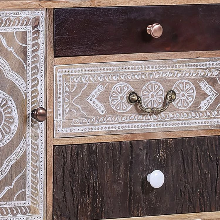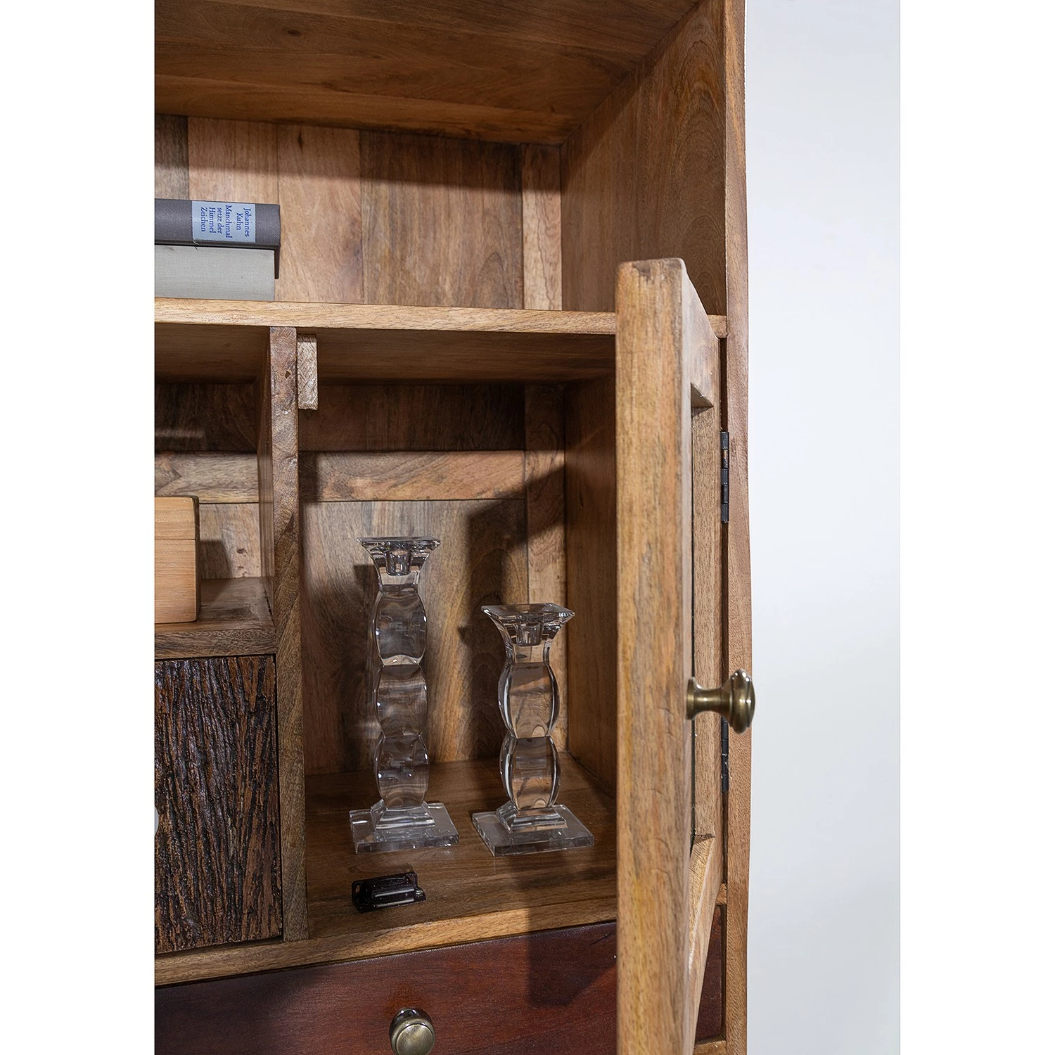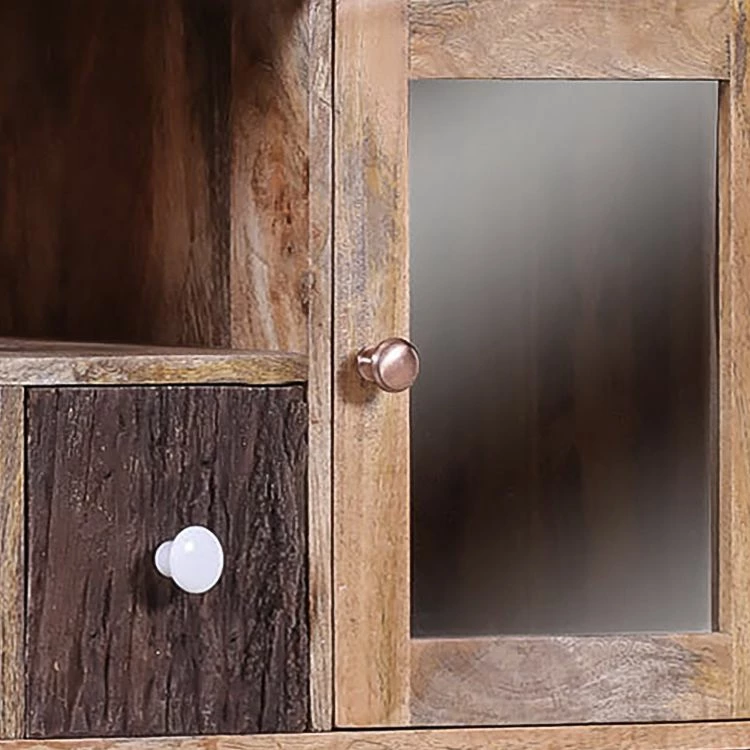 - Front: Glas & Massivholz Mango, gebeizt & lackiert