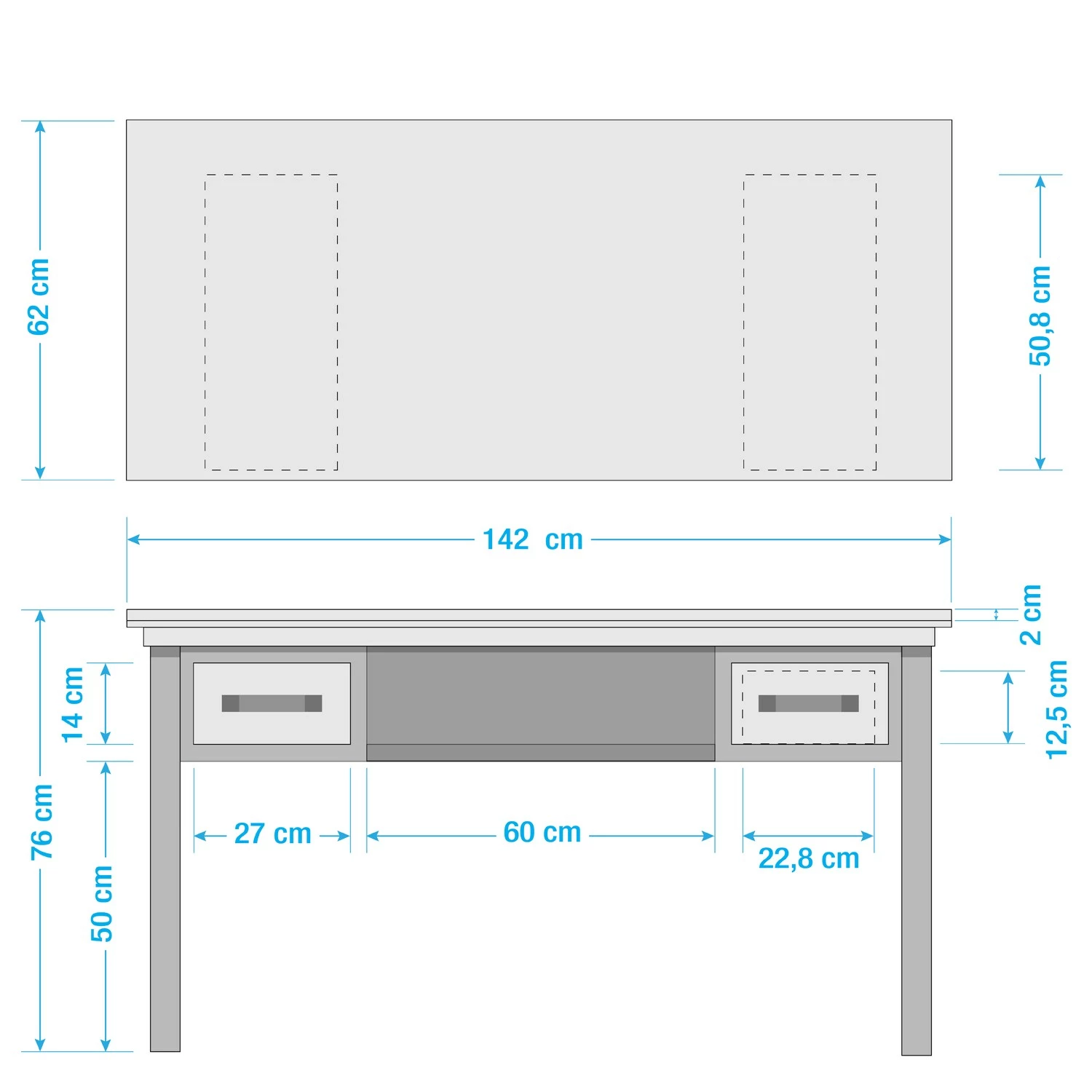 - Weitere Maße: Schublade BxHxT: je 27 x 14 x 52 cm