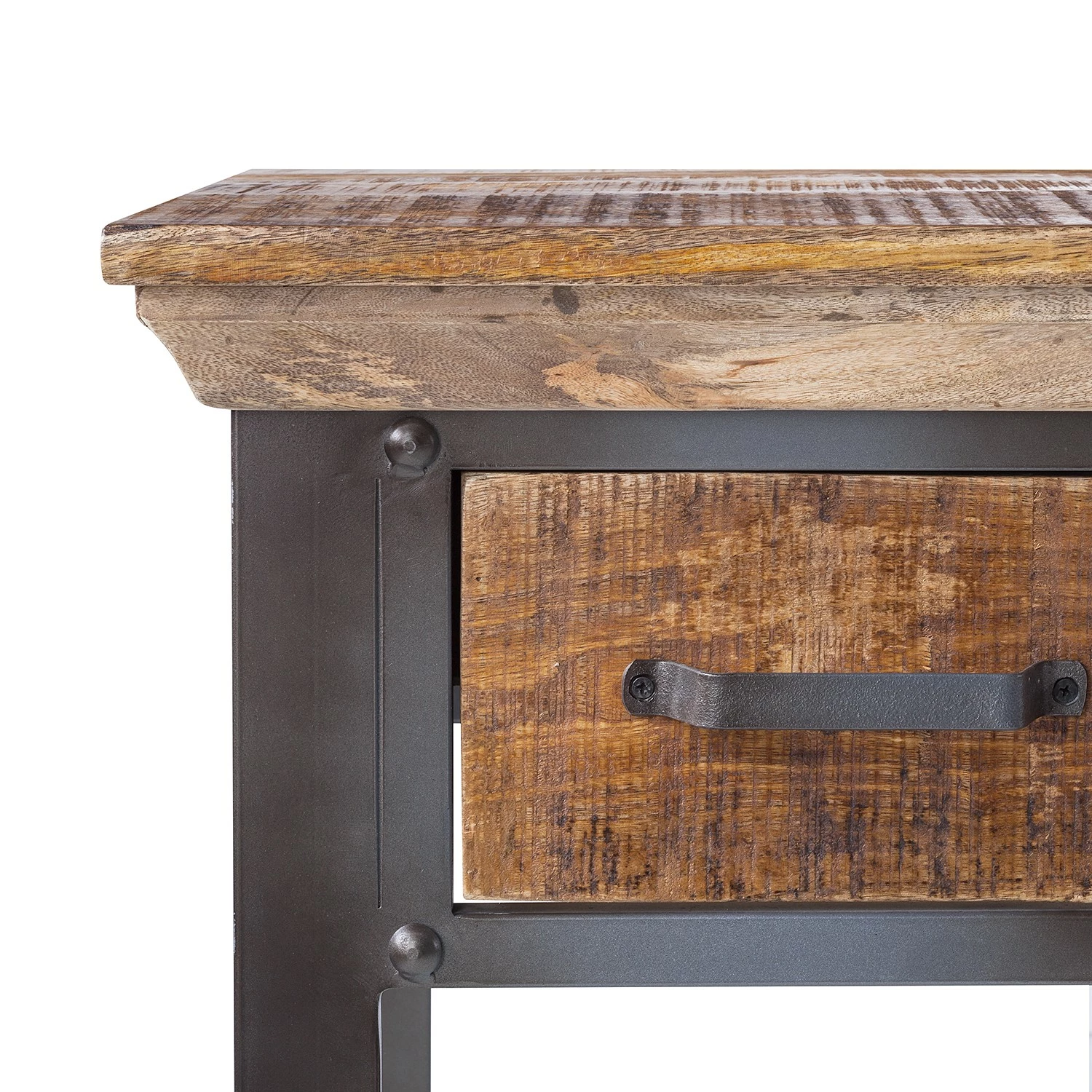 Der Schreibtisch Hunter ist dank der verwendeten Materialien und einer durchdachten Konstruktion sehr robust. Das Modell hält größeren Belastungen ohne Probleme stand. Optisch punktet das Stück durch die zeitlos elegante Maserung des Holzes, welche ideal mit dem lackierten Metall harmoniert. Das massive Mangoholz überzeugt durch seine natürliche Qualität. Dank der beiden Schubladen bietet der Schreibtisch Hunter einen hervorragenden Stauraum. In modern eingerichteten Wohnungen kommt dieses Möbelstück perfekt zur Geltung. Aufgrund der klassischen Form findet sich für den Schreibtisch stets ein geeignetes Plätzchen.