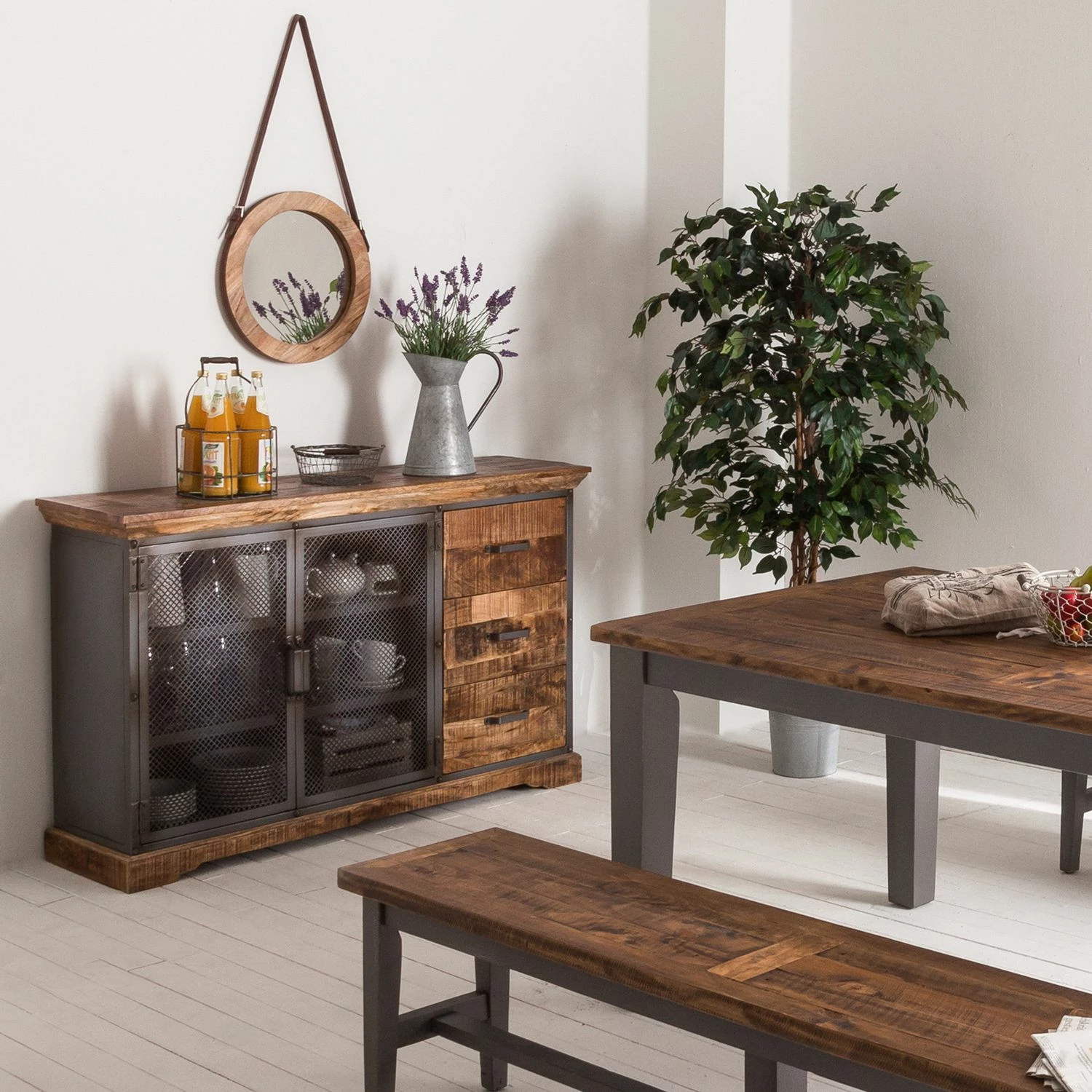 Ars manufacti Sideboard Hunter – Mango massiv / Metall – Mango / Blaugrau