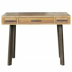 Ars manufacti Schreibtisch Tamati III – Pinie massiv / Edelstahl – Pinie / Schwarz