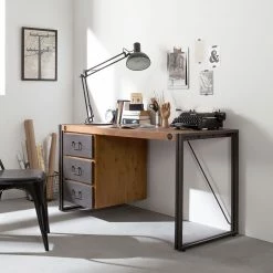 Ars manufacti Schreibtisch Woodson I – Akazie massiv / Eisen – Akazie Braun