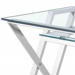 Velvet Studio Schreibtisch Genay – Sicherheitsglas / Edelstahl – Glasklar / Silber