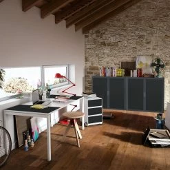 - Niedrige Ausführung: 2 versetzbare Metall-Einlegeböden für 2 Ordnerhöhen & zusätzlicher Stauraum
