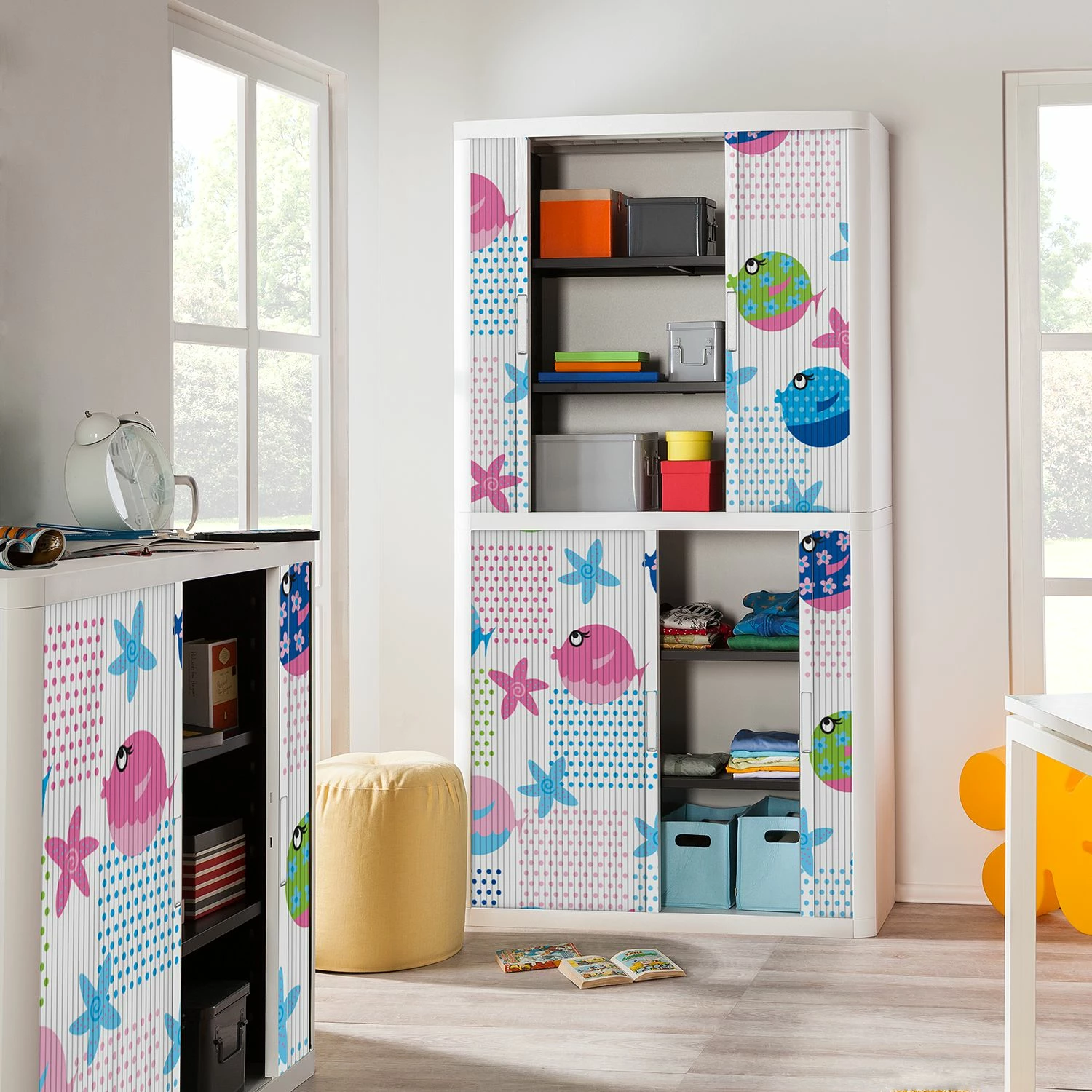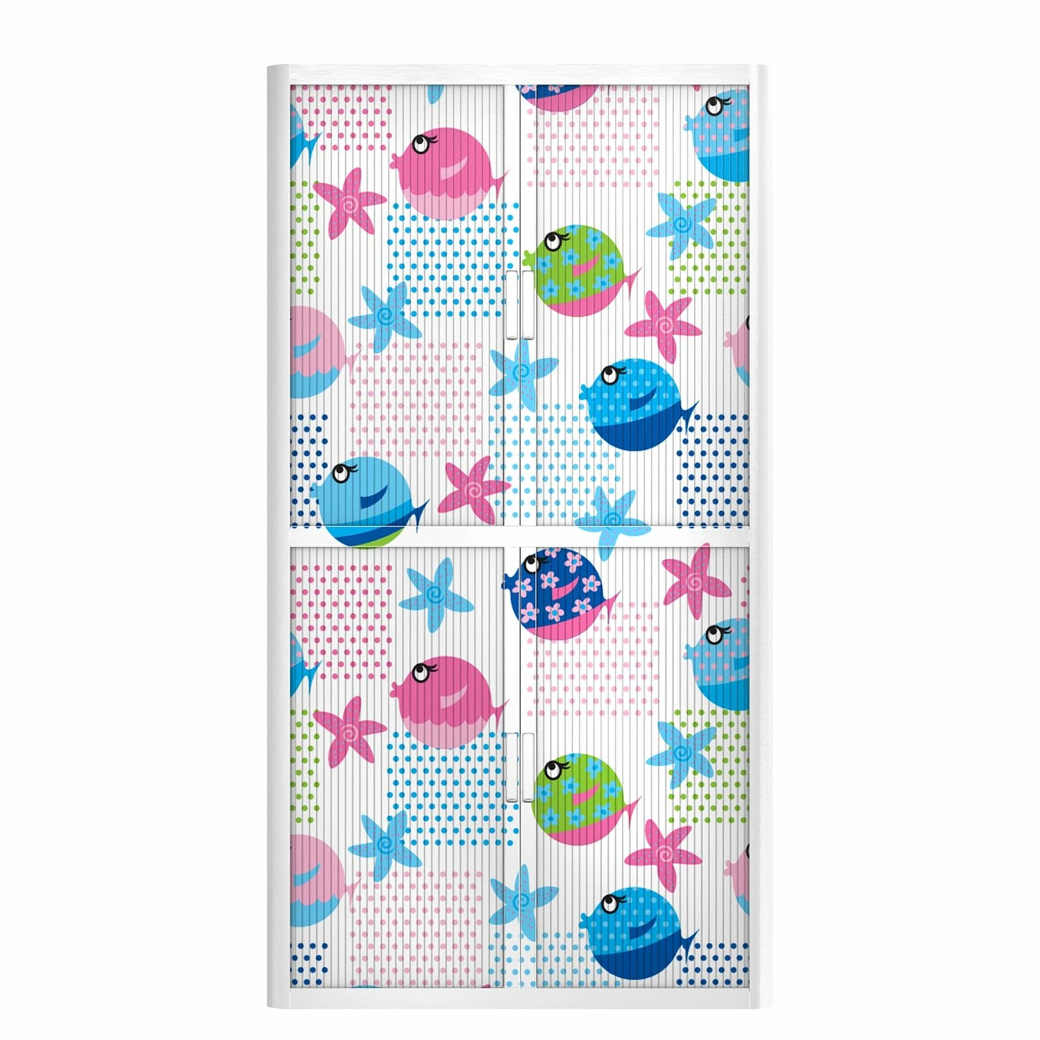 - Korpus: WeißFront: Weiß mit bunten Fischen, Seesternen & Punkten