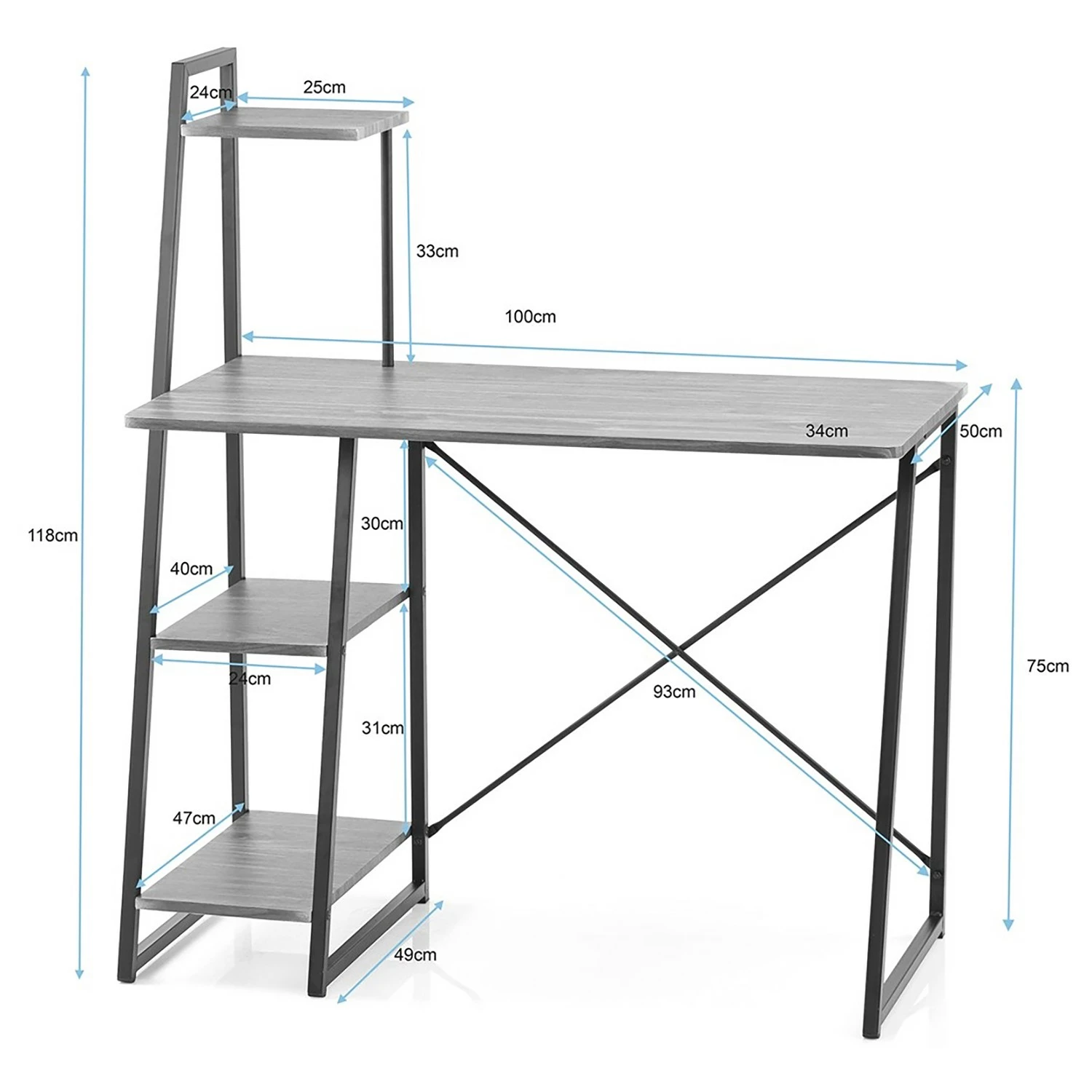 - Tischplatte & Ablagen: Spanplatte, foliert