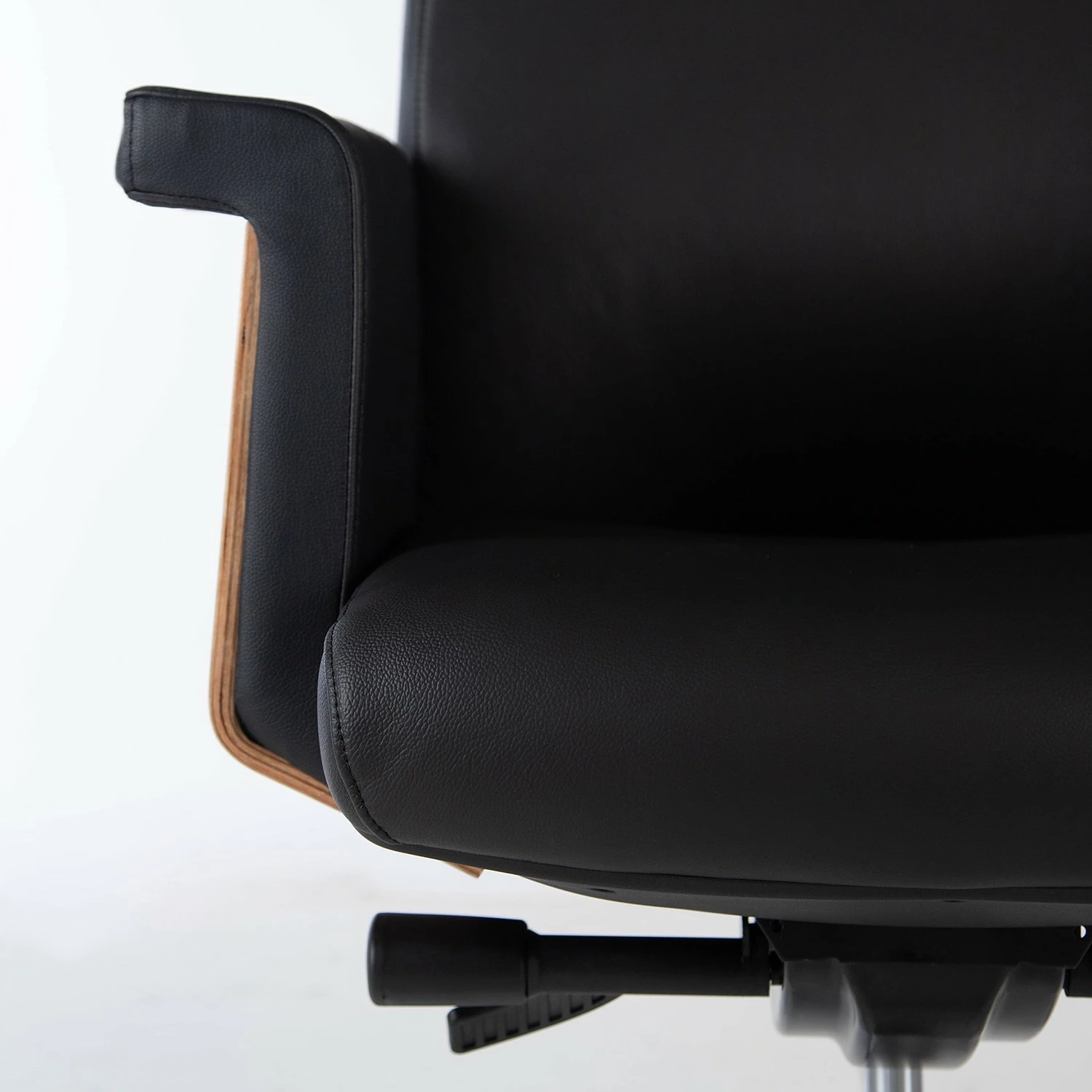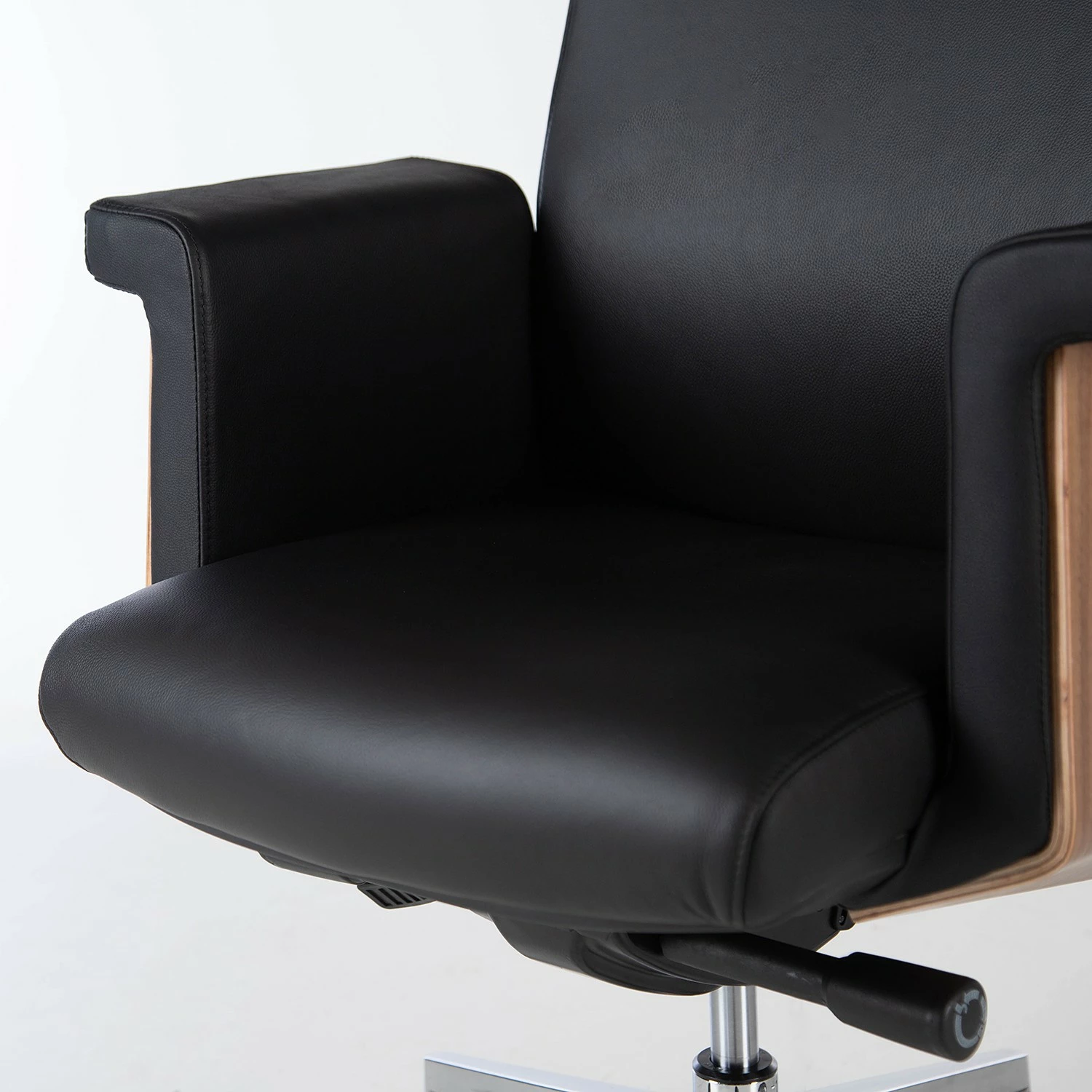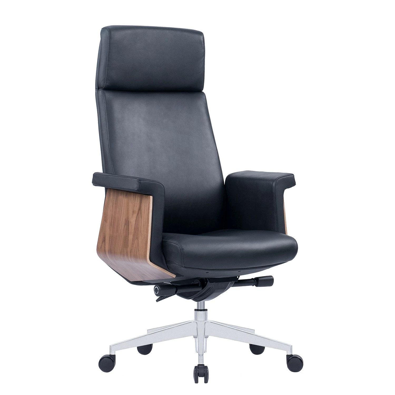 Fredriks Bürostuhl Weld – Echtleder / Walnuss Furnier / Metall – Schwarz / Walnuss / Aluminium
