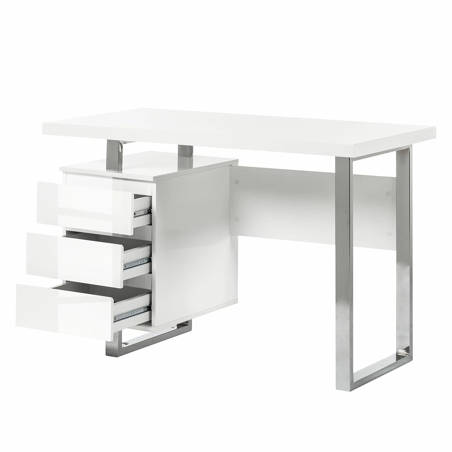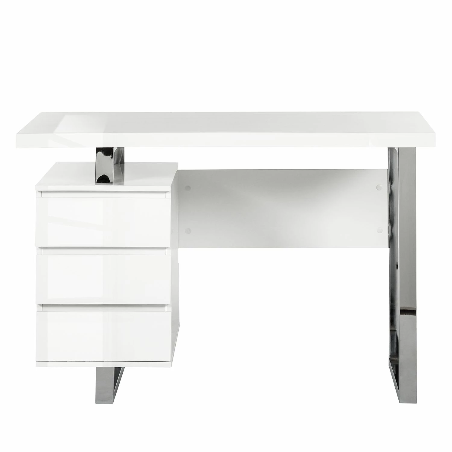 - Tischplatte, Schubladen und Korpus: MDF-Platte, lackiert Gestell: Vierkantrohr, verchromt