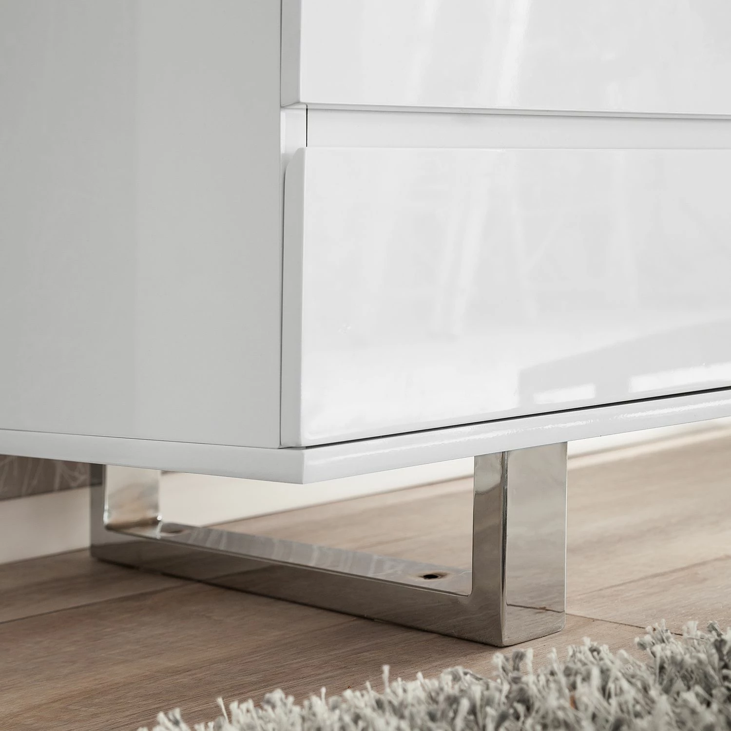 - Tischplatte und Korpus: Hochglanz WeißGestell: Silber