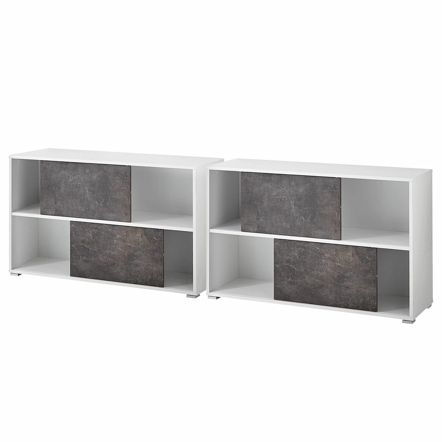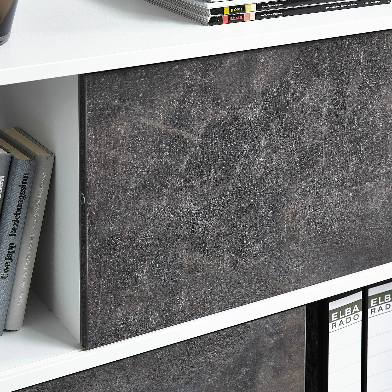 - Lieferumfang: 7-teiliges Büroset bestehend aus: 1 Schreibtisch, 1 Rollcontainer & 5 Schiebetürregalen ohne Dekoration