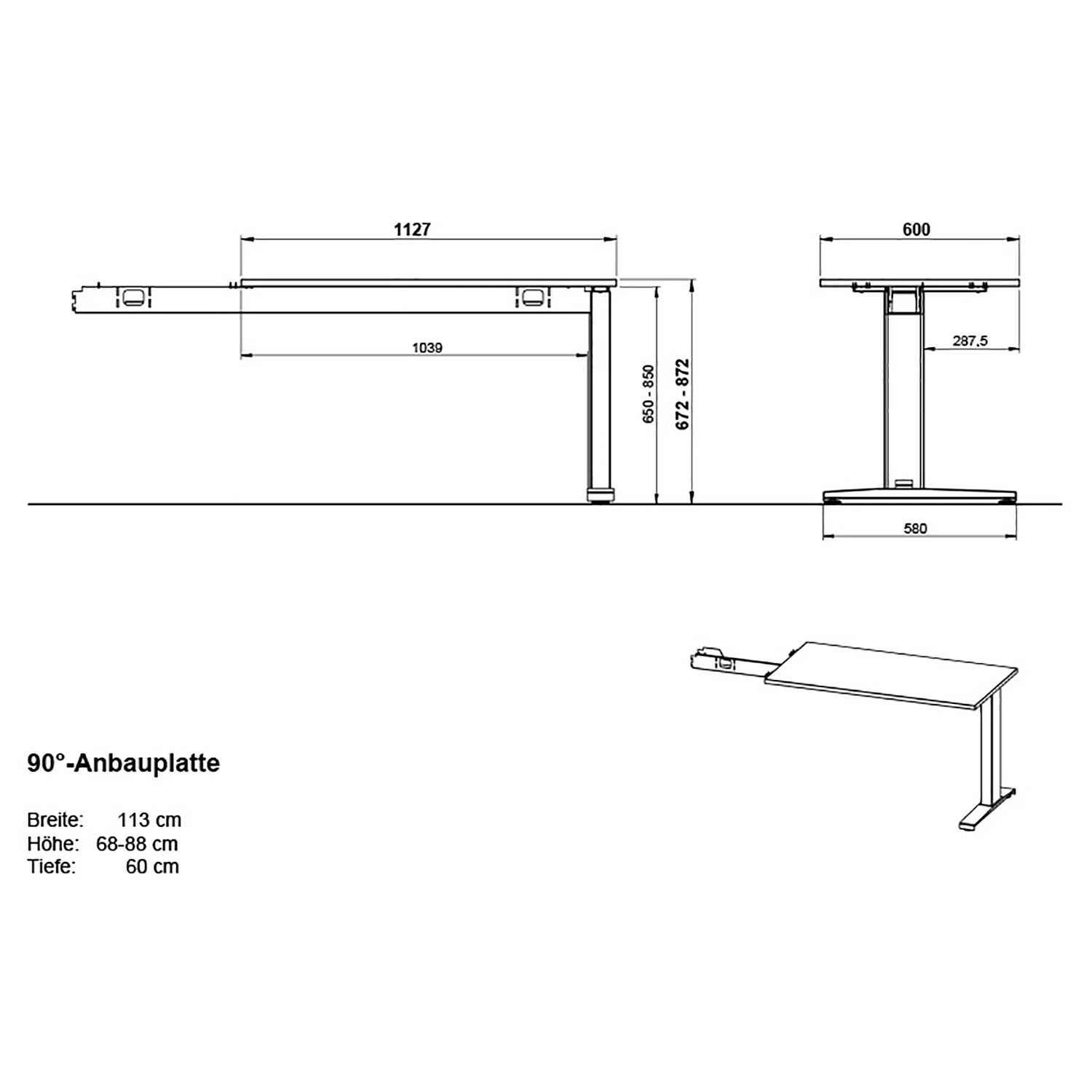 - Winkelschreibtisch: 160 x 68-88 x 193 cm