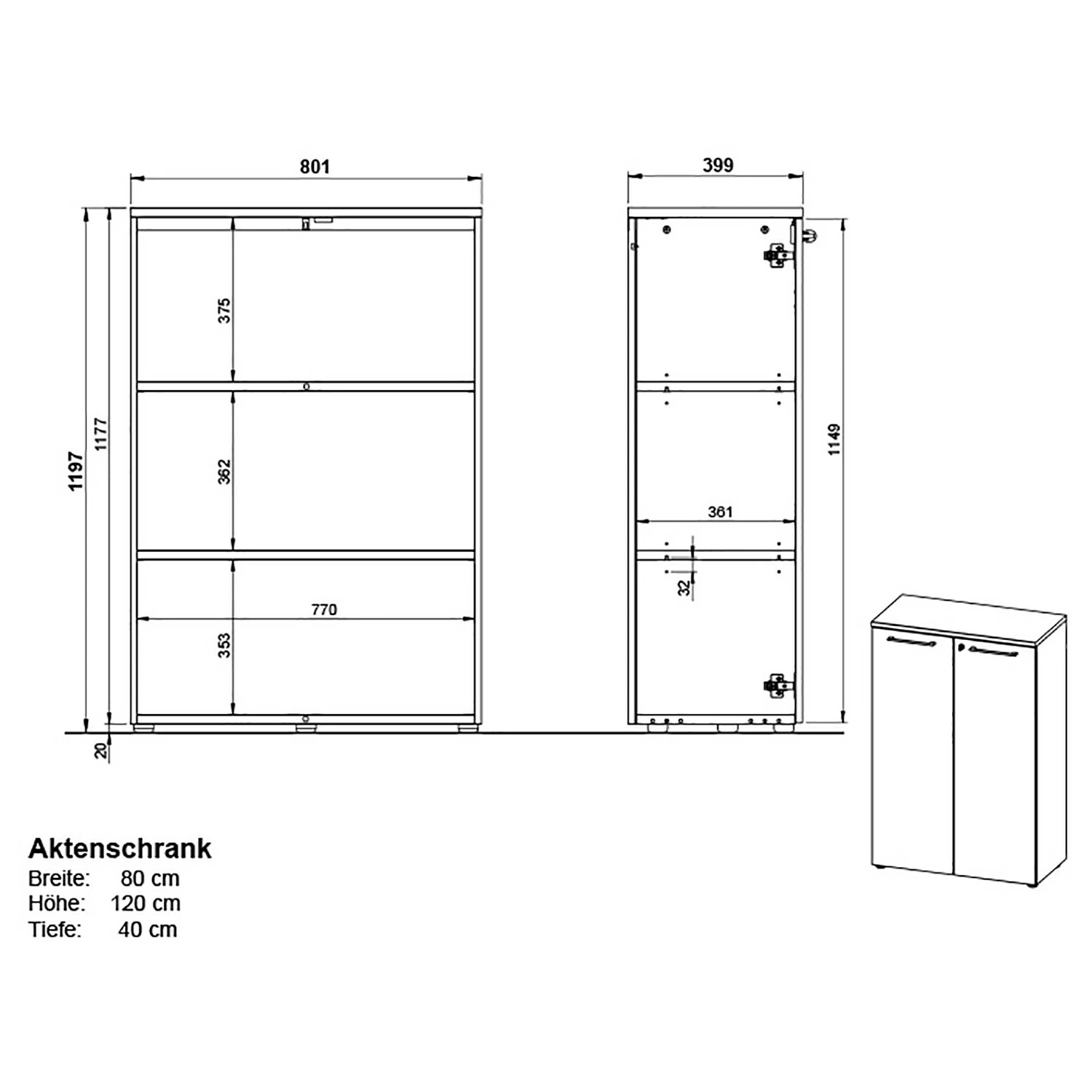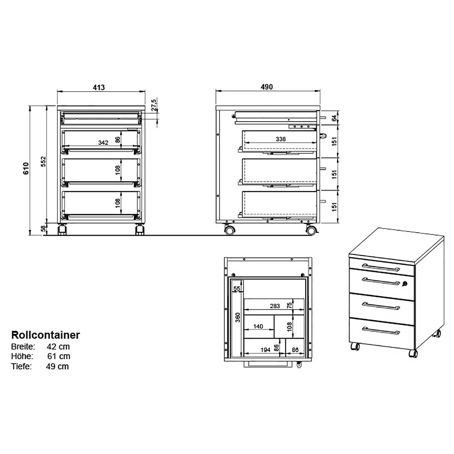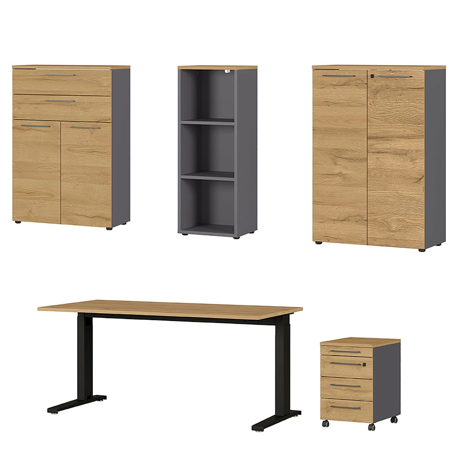 - Lieferumfang: Büroset bestehend aus 1 Schreibtisch, 2 Aktenschränken, 1 Aktenregal & 1 Rollcontainer ohne Dekoration