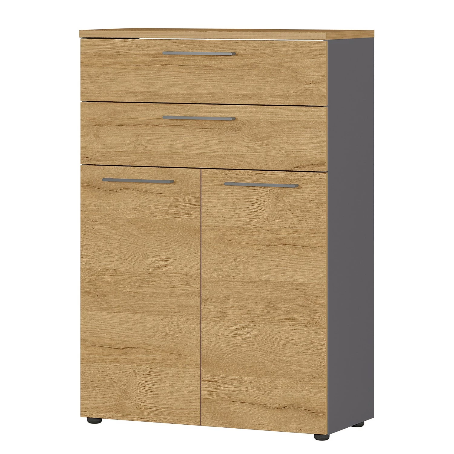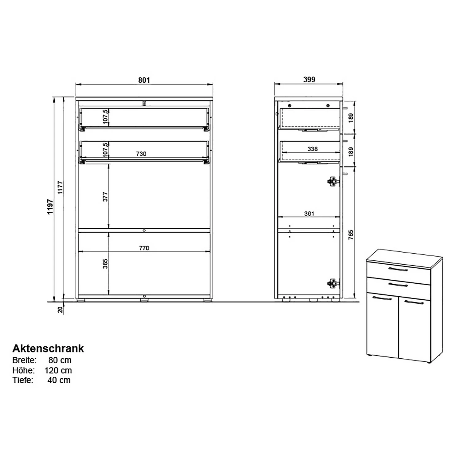 - Tischplatte, Front & Korpus: Spanplatte, melaminbeschichtet
