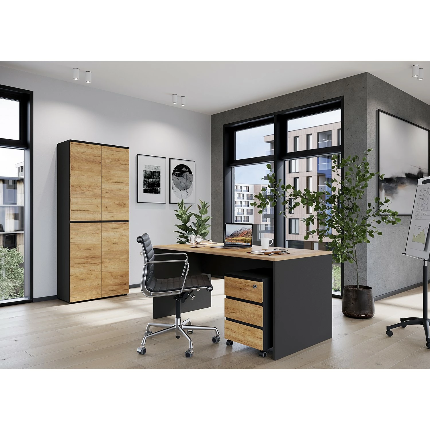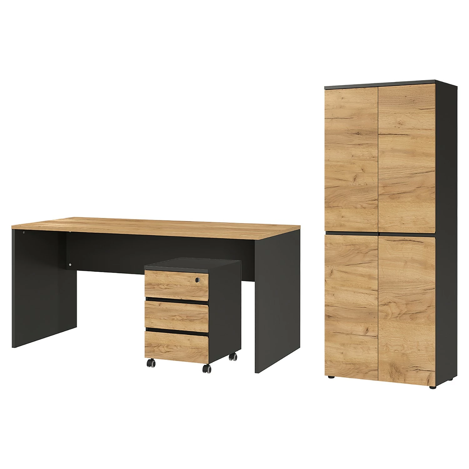 - Lieferumfang: Büroset bestehend aus 1 Schreibtisch, 1 Rollcontainer & 1 Aktenschrank