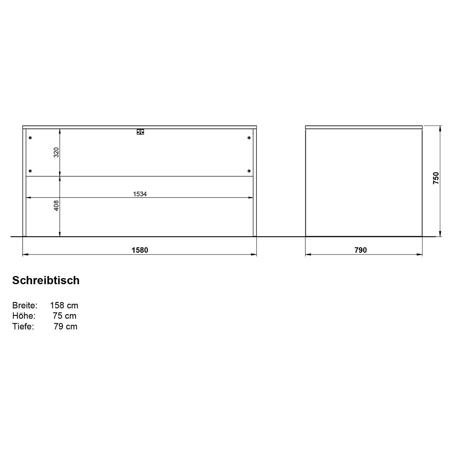- Schreibtisch: 158 x 75 x 79 cm