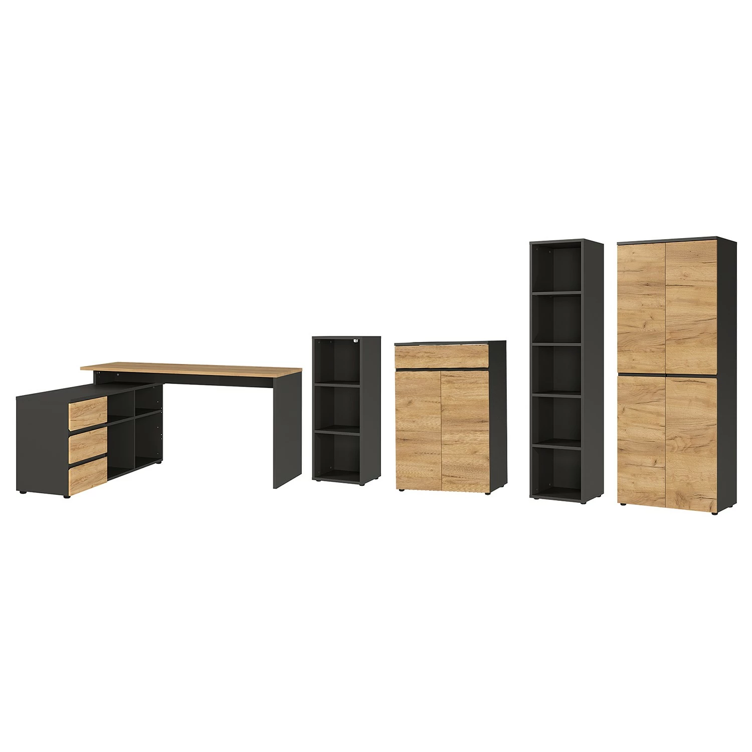 - Lieferumfang: Büroset bestehend 1 Eckschreibtisch, 2 Aktenschränken & 2 Aktenregalen