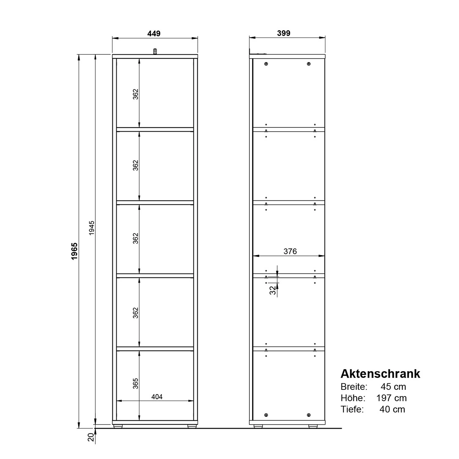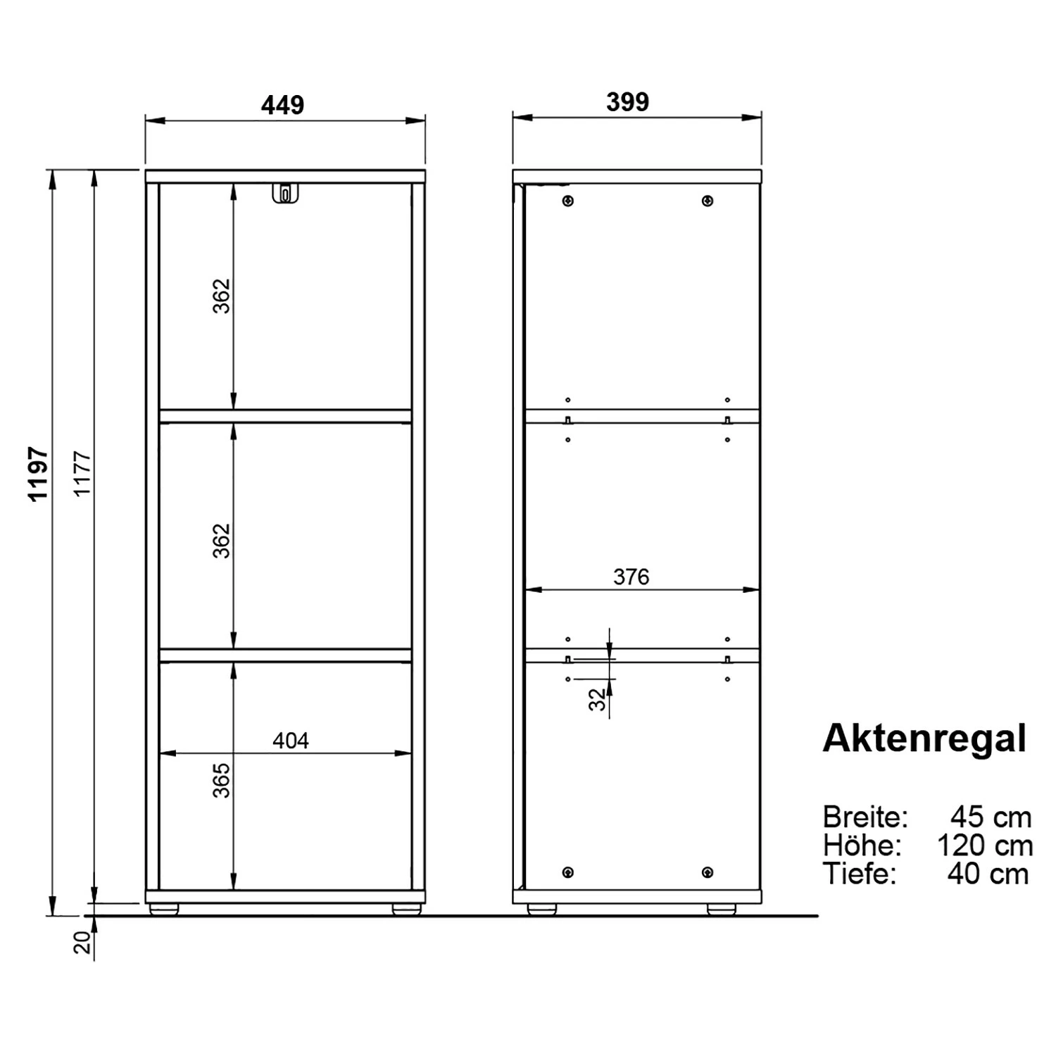 - Aktenregal groß: 45 x 197 x 40 cm