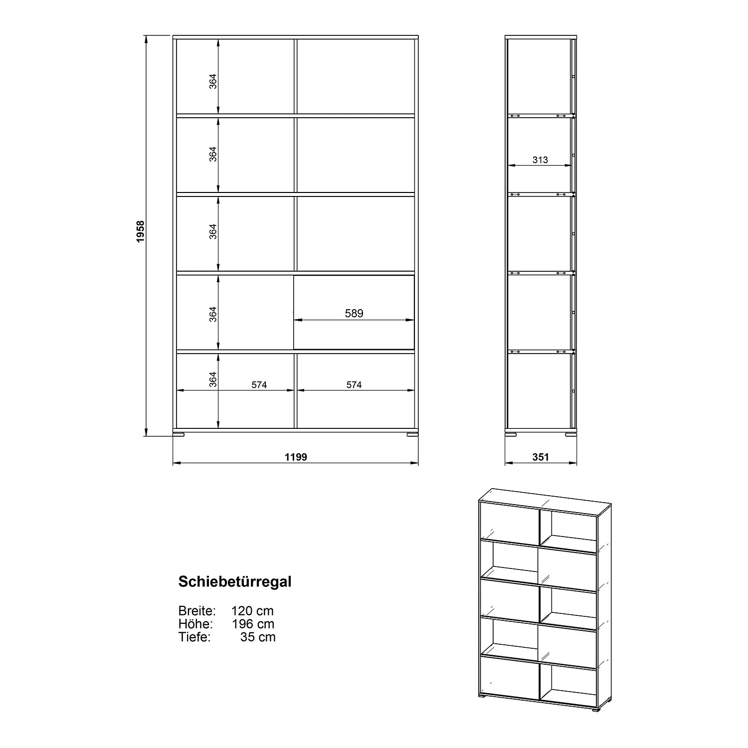 - Regal: 120 x 196 x 35 cm