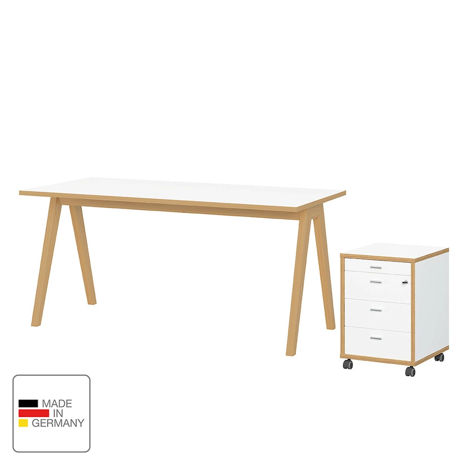 - Lieferumfang: 1 Schreibtisch & 1 Rollcontainer ohne Dekoration