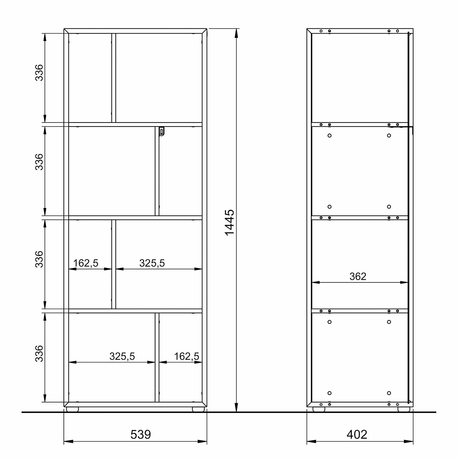 - Anzahl feste Fachböden: 3 Fachböden