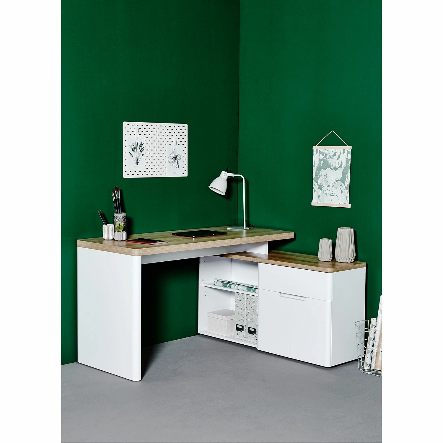 - Lieferumfang: Eckschreibtisch ohne Dekoration