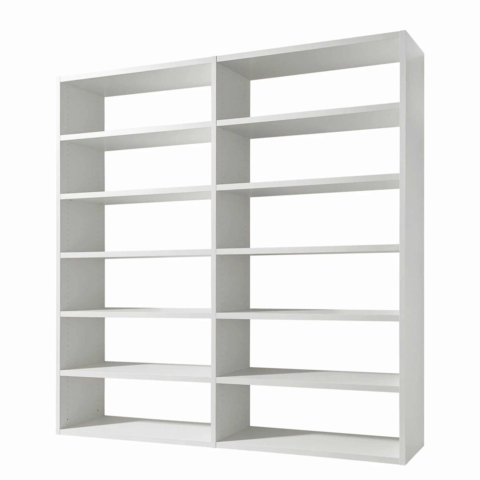 Die Bibliothek Empire der Marke loftscape wird von einfachem geometrischem Formenvokabular geprägt. Ihre puristische Farbgestaltung in mattem Weiß verleiht ihr ein freundliches Erscheinungsbild und gestaltet sie leicht in viele Einrichtungsstile integrierbar. Sie ist sowohl zur Aufstellung als Wandregal als auch zur Teilung von Räumlichkeiten geeignet.