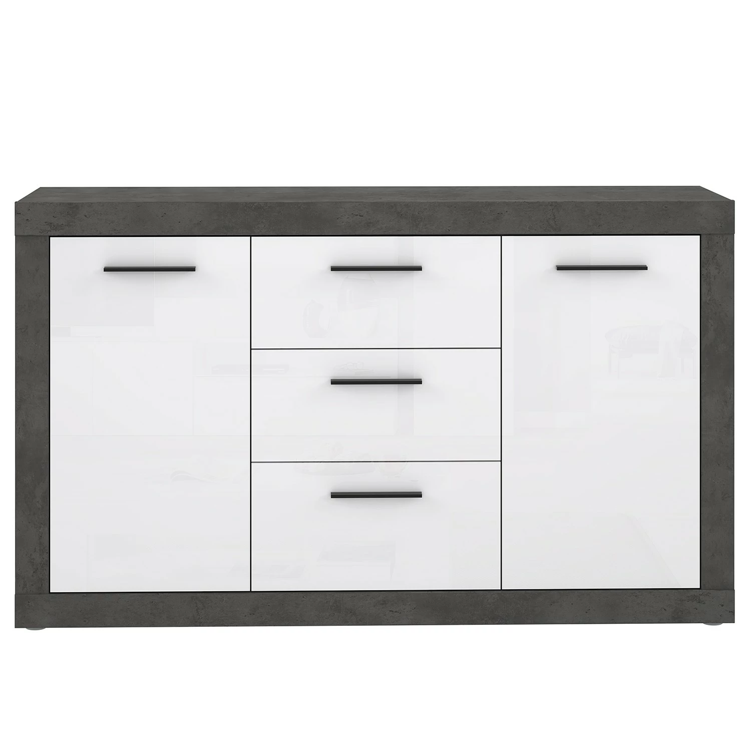- Hochglanz Weiß / Beton Dekor