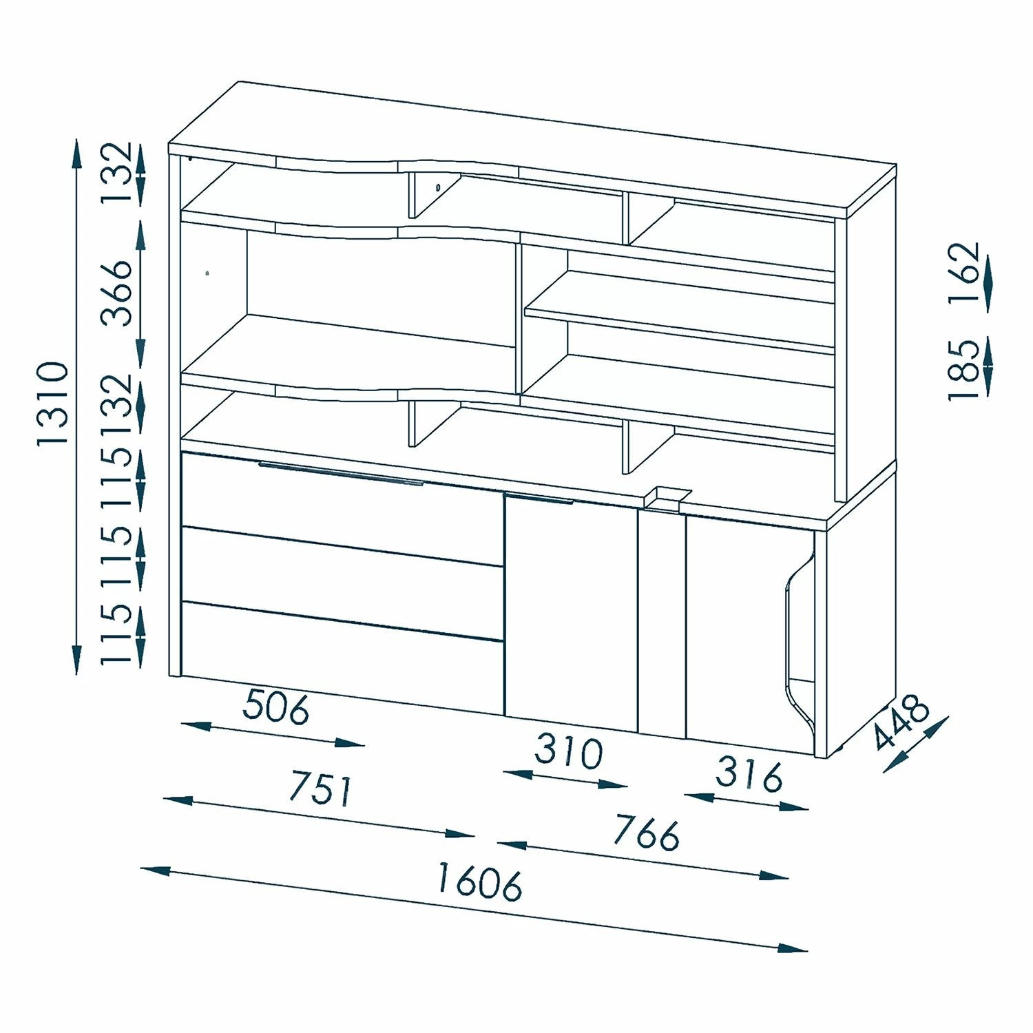 - Lieferumfang: Ausführung rechts vom Schreibtisch platzierbar