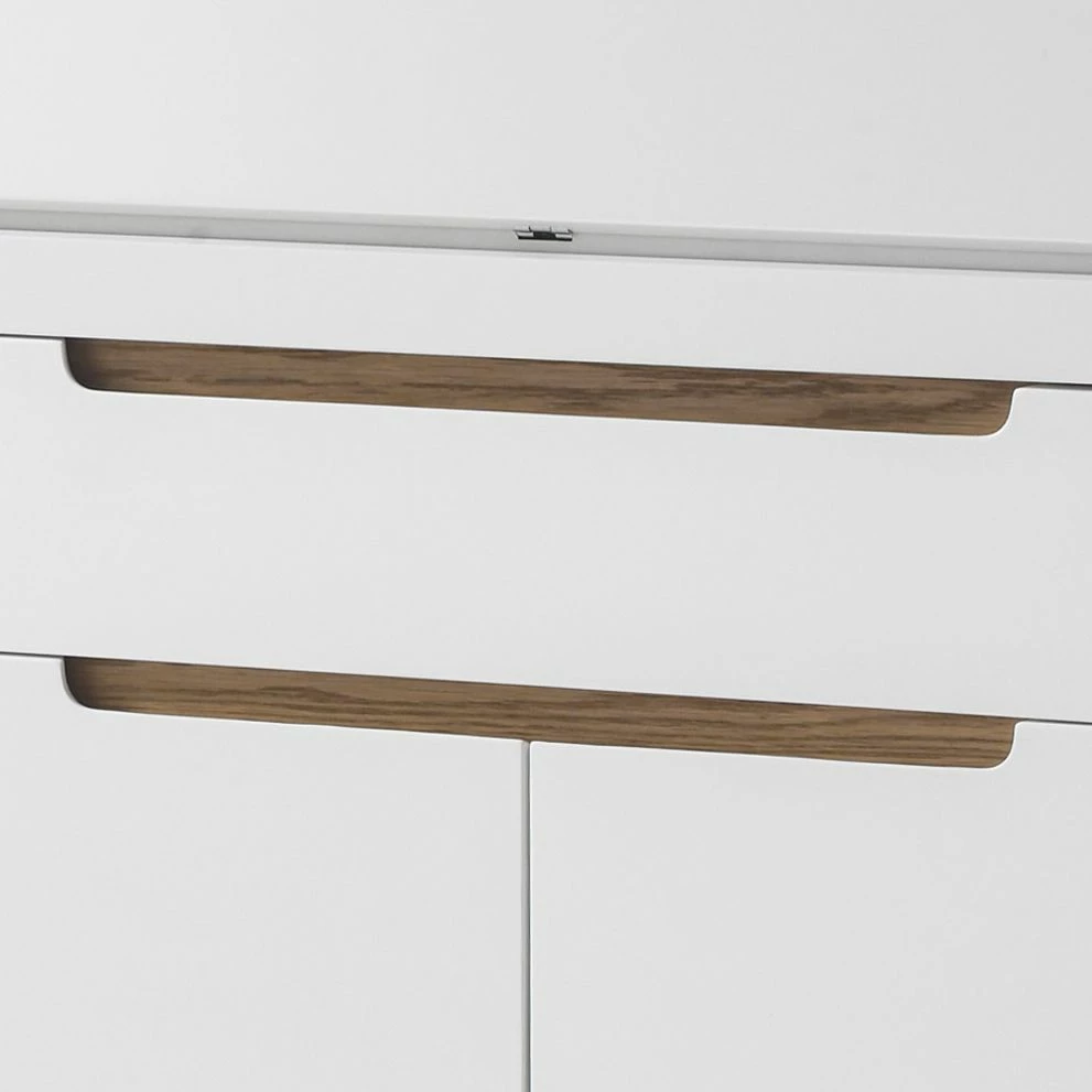 - Front & Korpus: MDF (Mitteldichte Holzfaserplatte), lackiert
