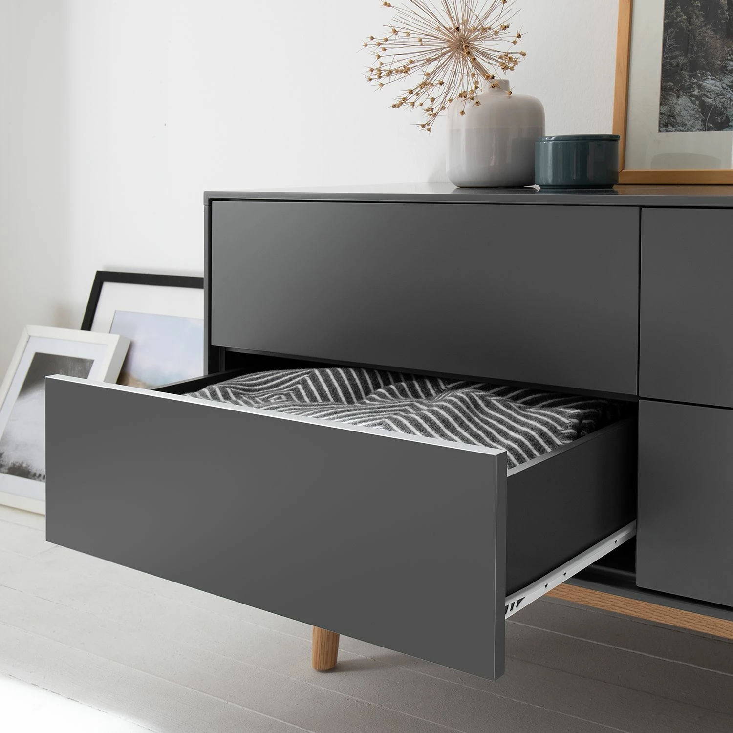 - Korpus: MDF (Mitteldichte Holzfaserplatte), lackiert