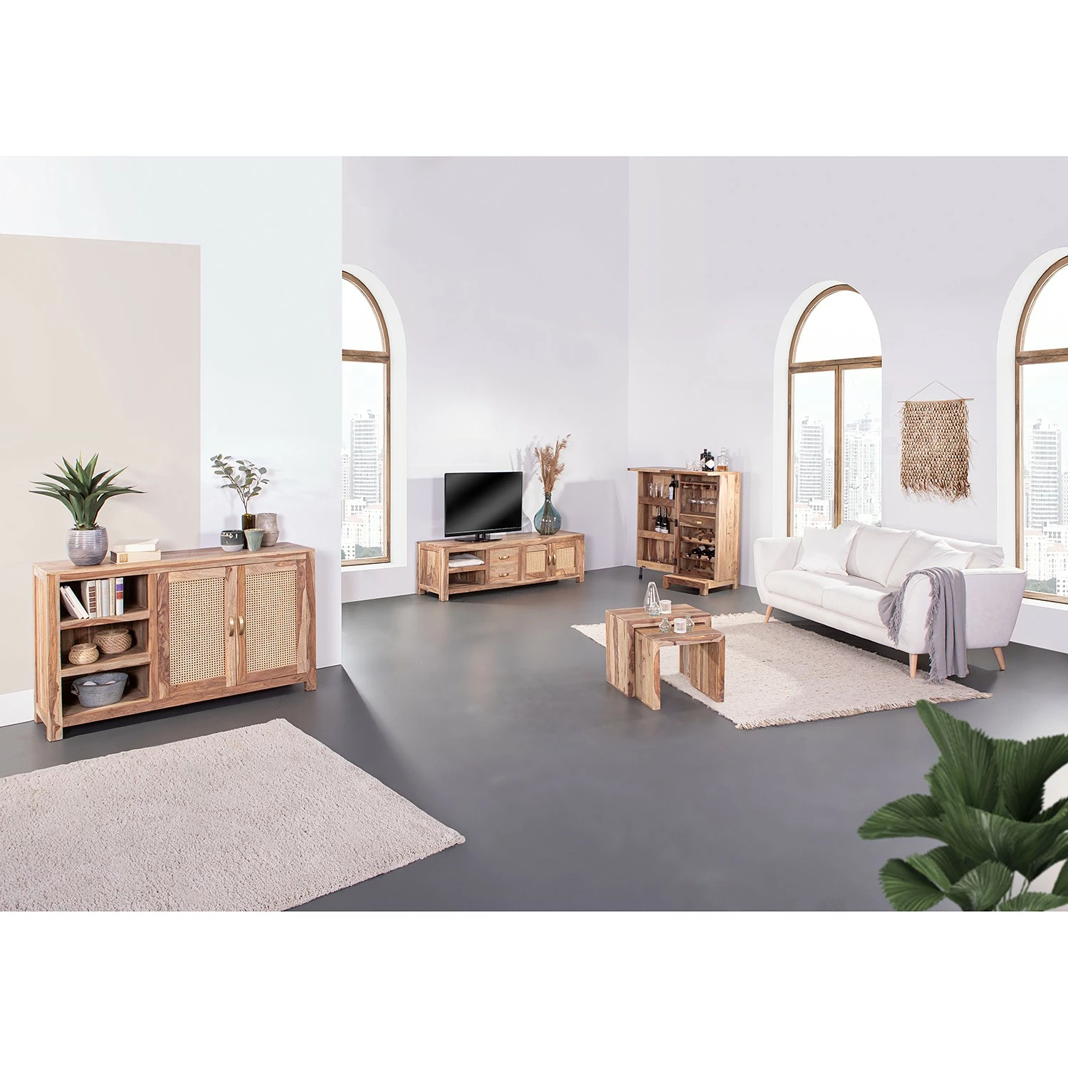 - Front: Rattan / Massivholz Sheesham, gebeizt & lackiert