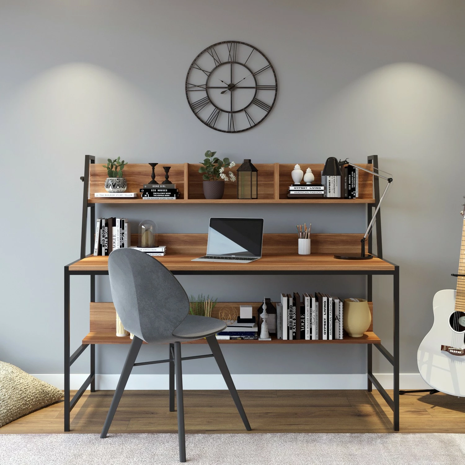 - Tischplatte & Ablage: MDF (Mitteldichte Holzfaserplatte), melaminbeschichtet