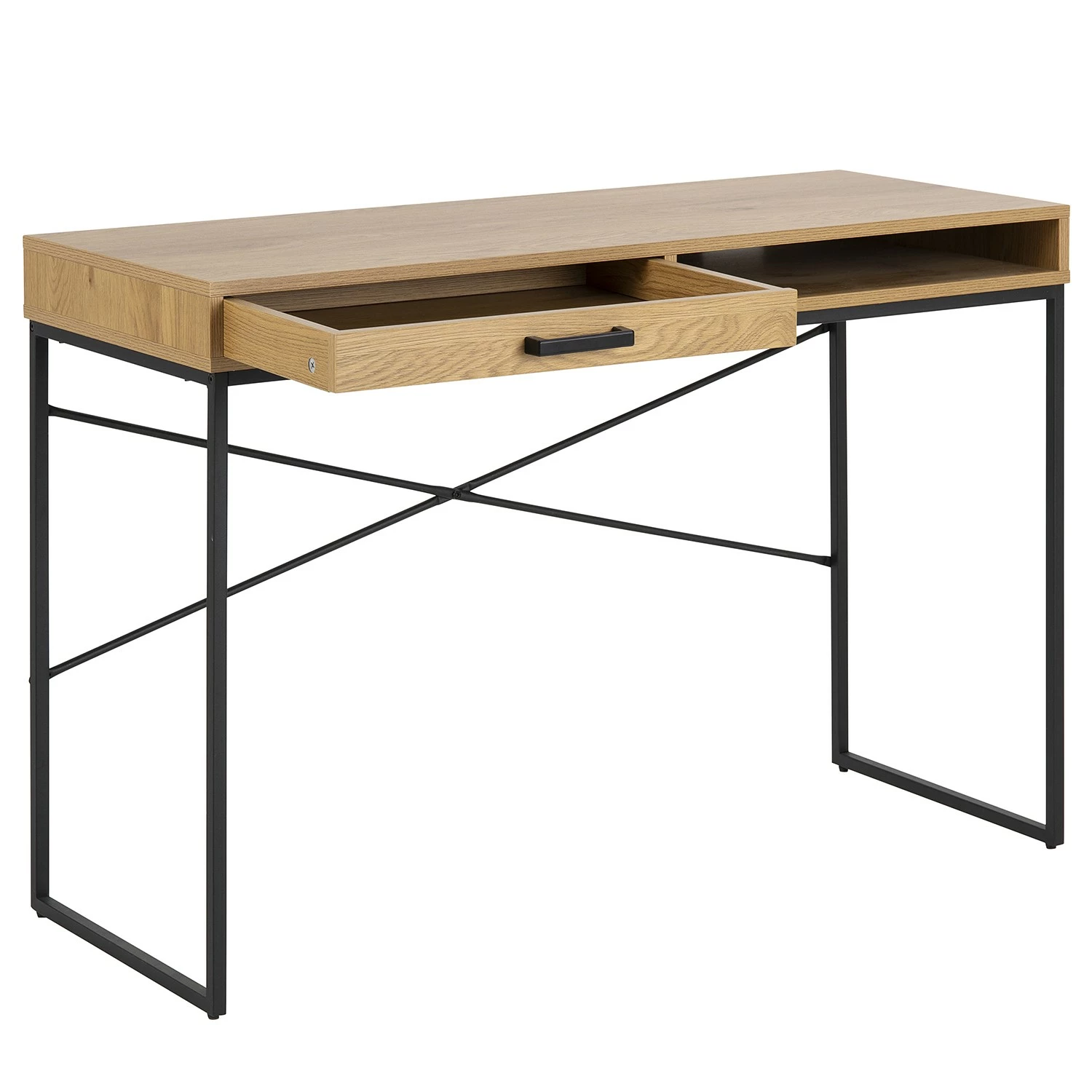 - Tischplatte & Korpus: MDF (Mitteldichte Holzfaserplatte), melaminbeschichtet