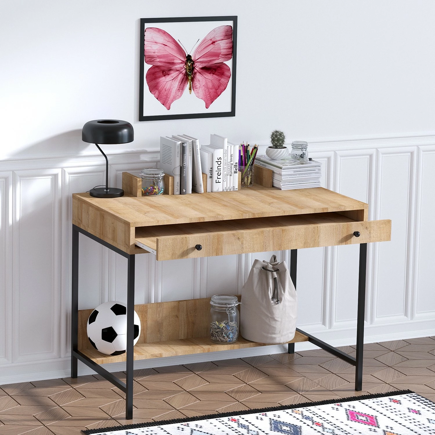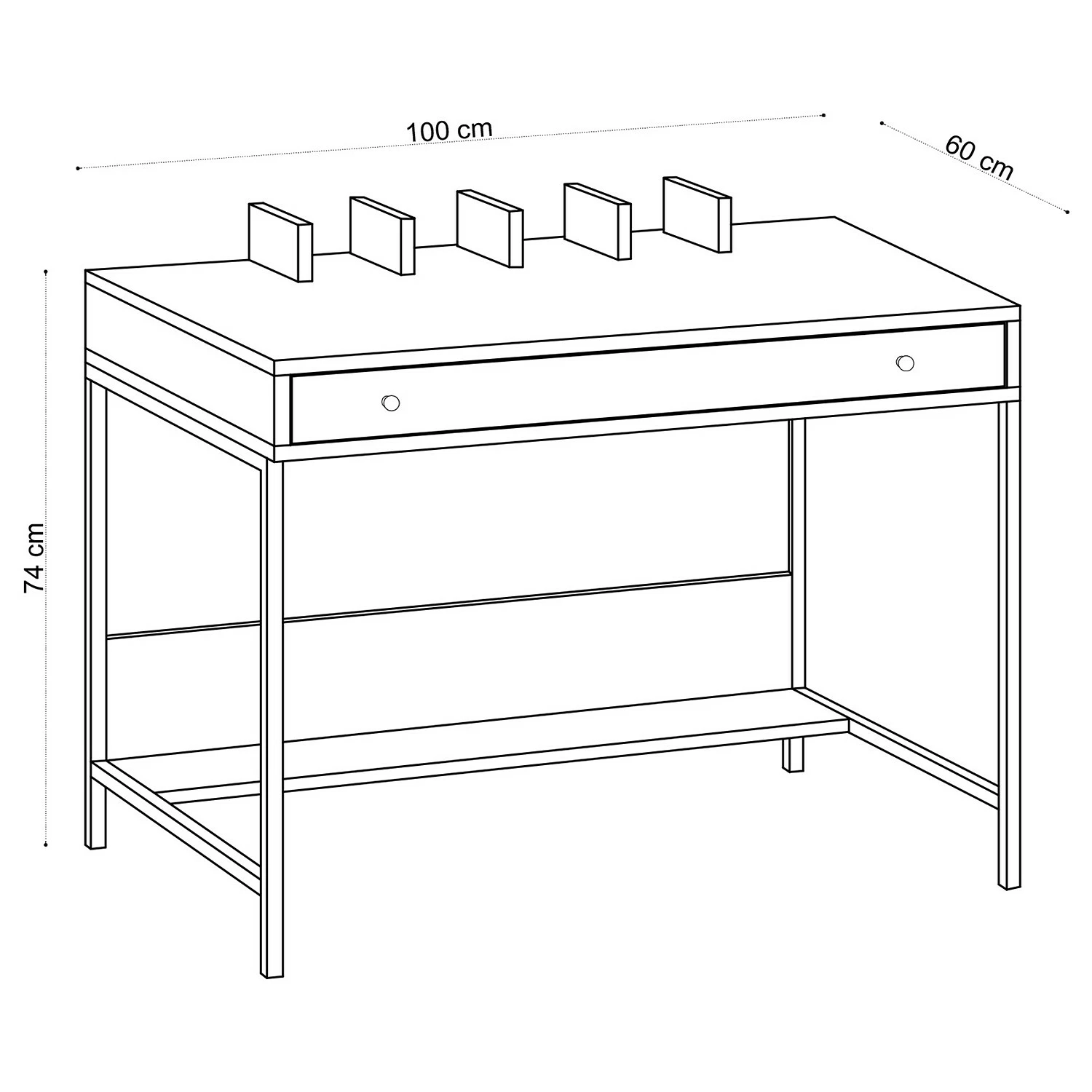 - Tischplatte & Ablage: MDF (Mitteldichte Holzfaserplatte), melaminbeschichtet