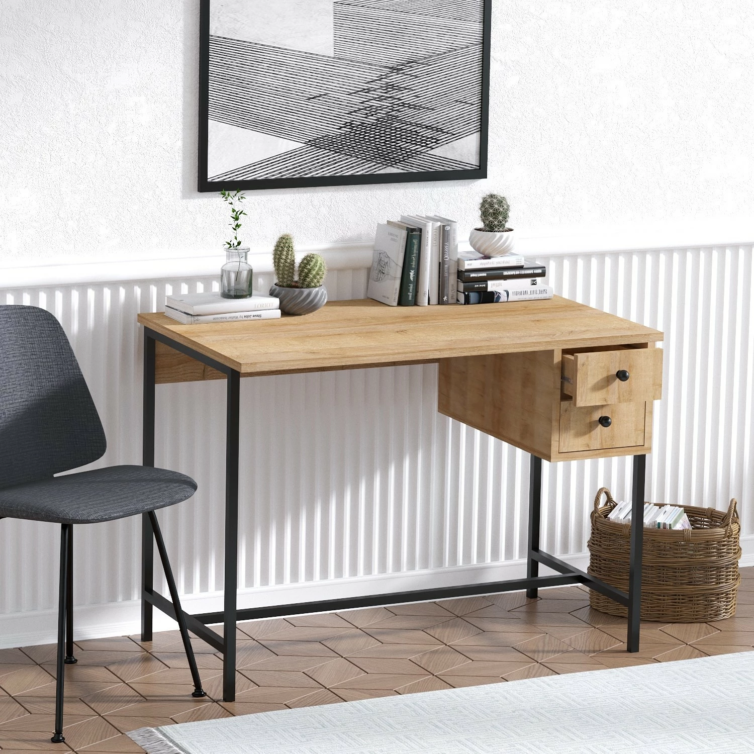 - Tischplatte & Front: Eiche Dekor