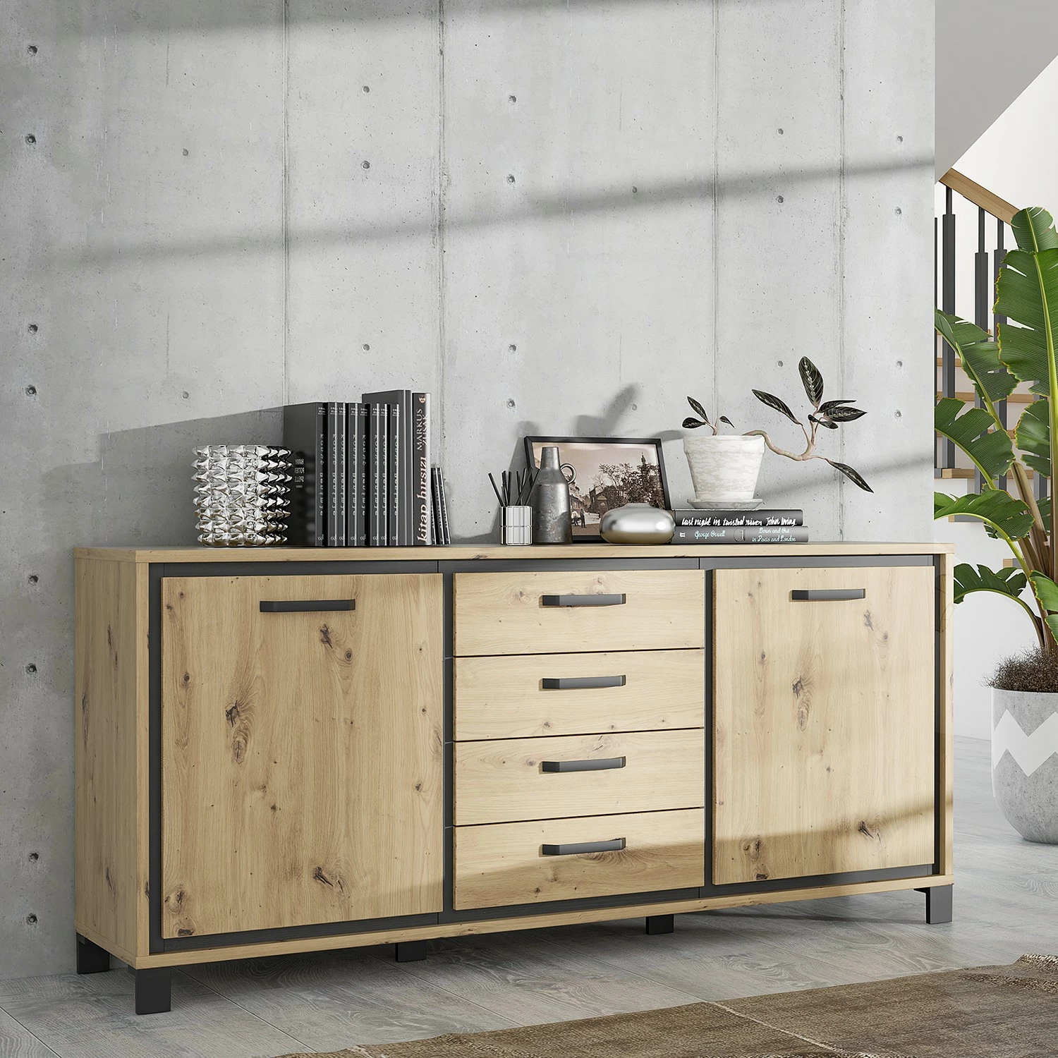 Red Living Sideboard Egan I – Eiche Artisan Dekor / Eiche Schwarz Dekor