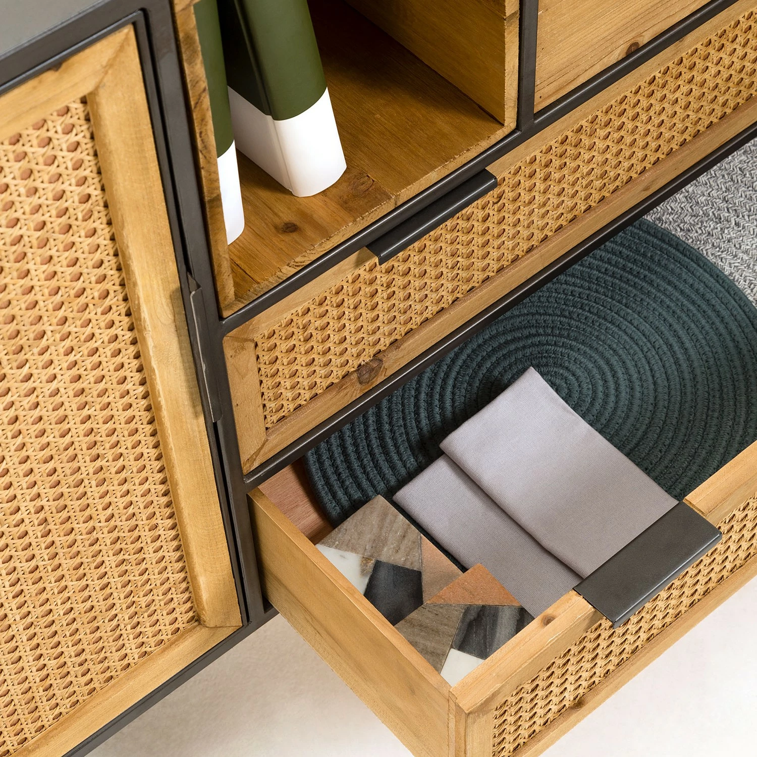 - Front: Massivholz Fichte / MDF (Mitteldichte Holzfaserplatte), lackiert