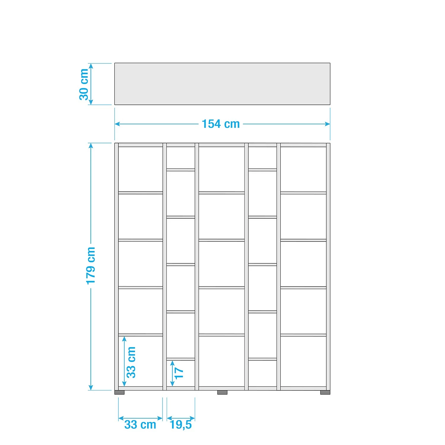 - Mittlere Fächer: je 19,5 x 34 x 19,5 cm