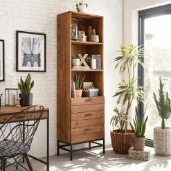 Ars manufacti Büroregal Domme – Akazie massiv / Eisen – Akazie / Anthrazit