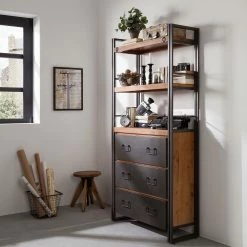 Ars manufacti Regal Grasby – Altholz Pinie / Metall – Pinie Dunkel / Schwarz