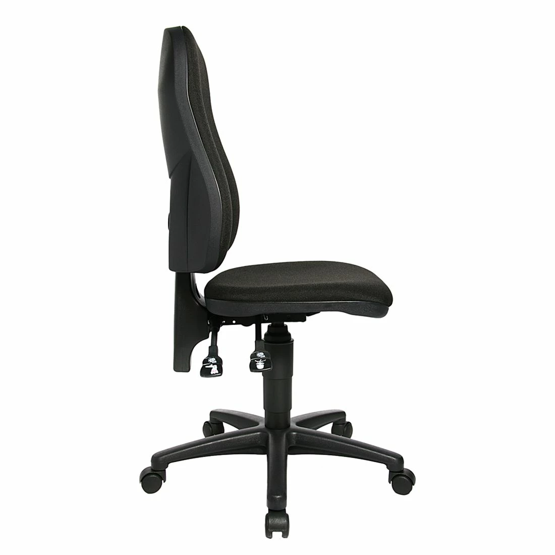 Mit diesem schwarzen Bürostuhl bietet Topstar eine optimale Sitzgelegenheit für Menschen mit einer klassischen Einrichtung. Besonders hervorzuheben ist bei diesem Bürodrehstuhl die individuelle Höhenverstellbarkeit. Der unkomplizierte Kunststoff des Bürodrehstuhls könnte kaum leichter zu pflegen sein. Mithilfe der Rollen an den Beinen lässt er sich außerdem flexibel in verschiedenen Räumen nutzen. Mit dem Bezug aus Stoff überzeugt der Bürodrehstuhl darüber hinaus mit Behaglichkeit.