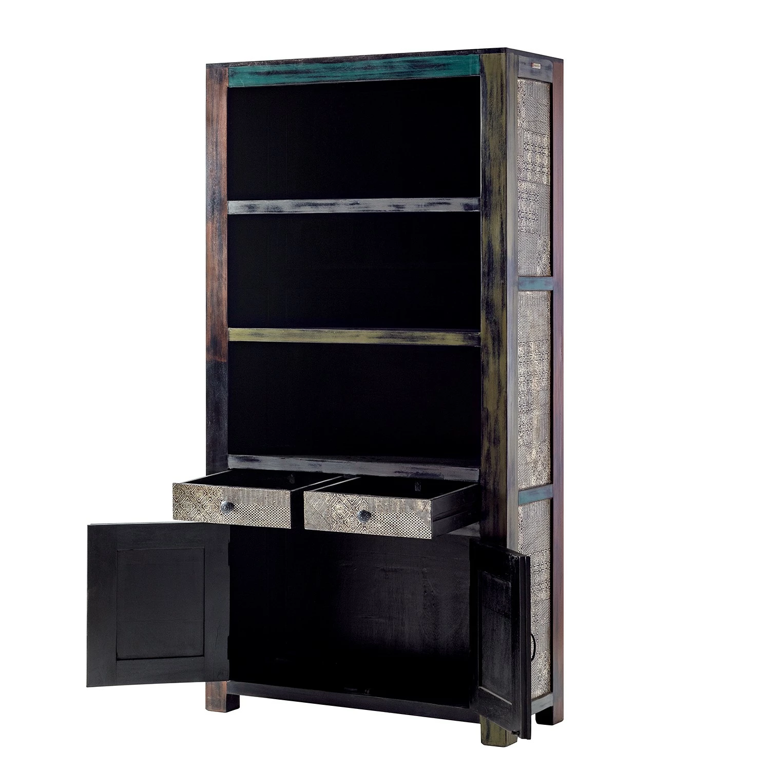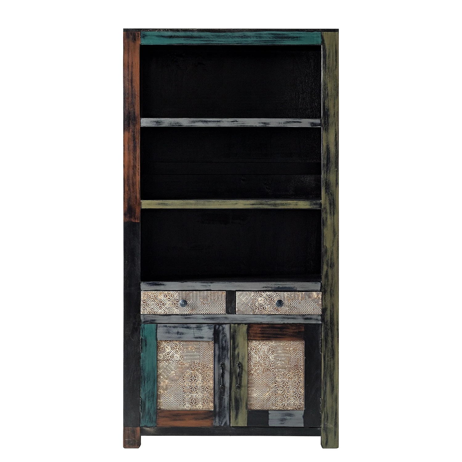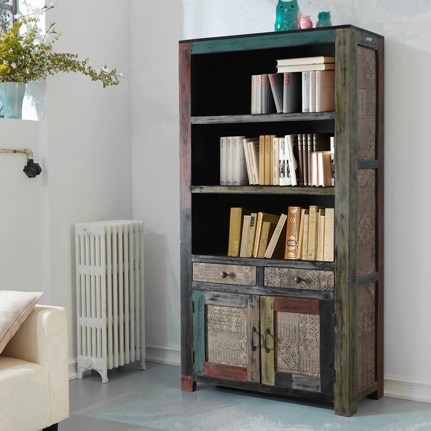 Wie ein liebevoll restauriertes Erbstück wirkt das Regal Goa III. Akazien- und Mango-Holz aus Indien wurden in traditioneller Handarbeit verarbeitet. Hinter den unteren Türen sowie in drei offenen Fächern bietet das Regal Goa III reichlich Stauraum. In den beiden Schubladen zwischen Türen und Regalteil finden Kleinigkeiten Ihren Platz. Eine edle, antik anmutende Lackierung unterstreicht die hervorragende Qualität. Absetzungen in verschiedenen Farben machen das Regal vielseitig kombinierbar. In jedem Zimmer wird das Regal Goa III zu einem bewunderten Blickfang.