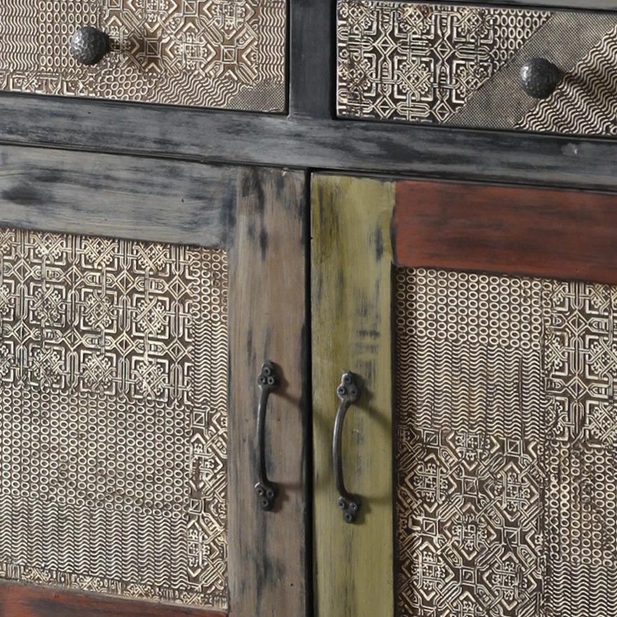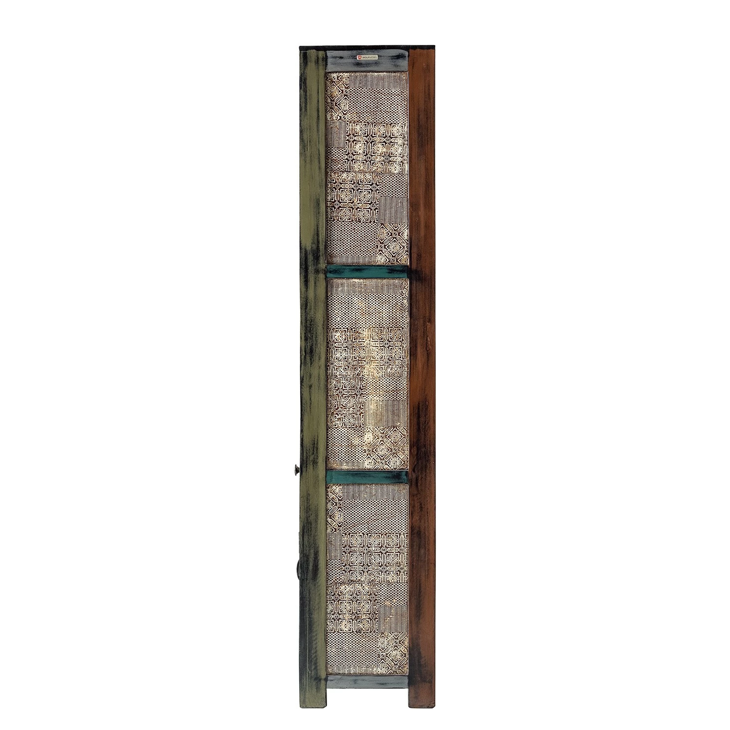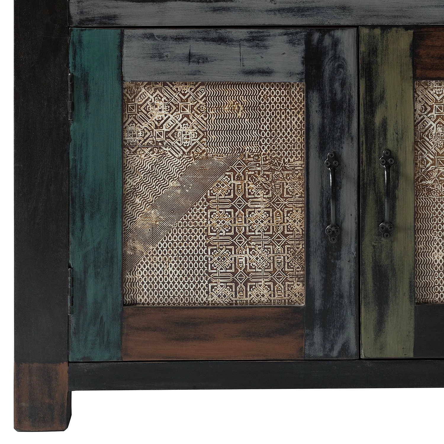 Wie ein liebevoll restauriertes Erbstück wirkt das Regal Goa III. Akazien- und Mango-Holz aus Indien wurden in traditioneller Handarbeit verarbeitet. Hinter den unteren Türen sowie in drei offenen Fächern bietet das Regal Goa III reichlich Stauraum. In den beiden Schubladen zwischen Türen und Regalteil finden Kleinigkeiten Ihren Platz. Eine edle, antik anmutende Lackierung unterstreicht die hervorragende Qualität. Absetzungen in verschiedenen Farben machen das Regal vielseitig kombinierbar. In jedem Zimmer wird das Regal Goa III zu einem bewunderten Blickfang.