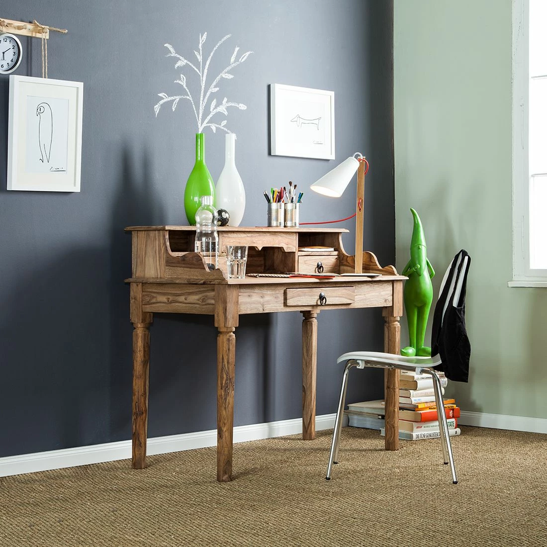 Dieser beige Sekretär von Wolf Möbel gehört zur Serie Bombay und ist perfekt für alle, die ein Landhausdesign bevorzugen. Das edle Sheeshamholz des Sekretärs hat folgenden Vorzug: Es verspricht eine lange Lebensdauer.